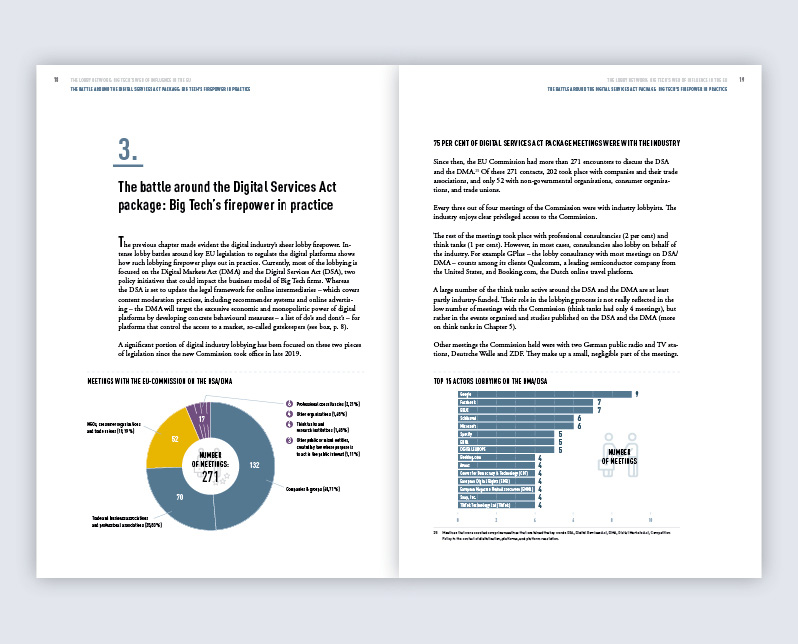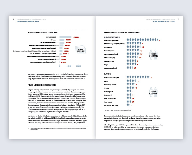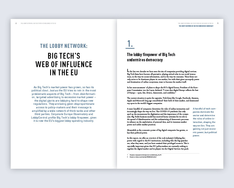 LobbyControl und Corporate Europe Observatory haben die Lobbyarbeit von Big Tech genau unter die Lupe genommen und veröffentlichten dazu diese Studie. Wir realisierten das Layout und die anschaulichen Infografiken.