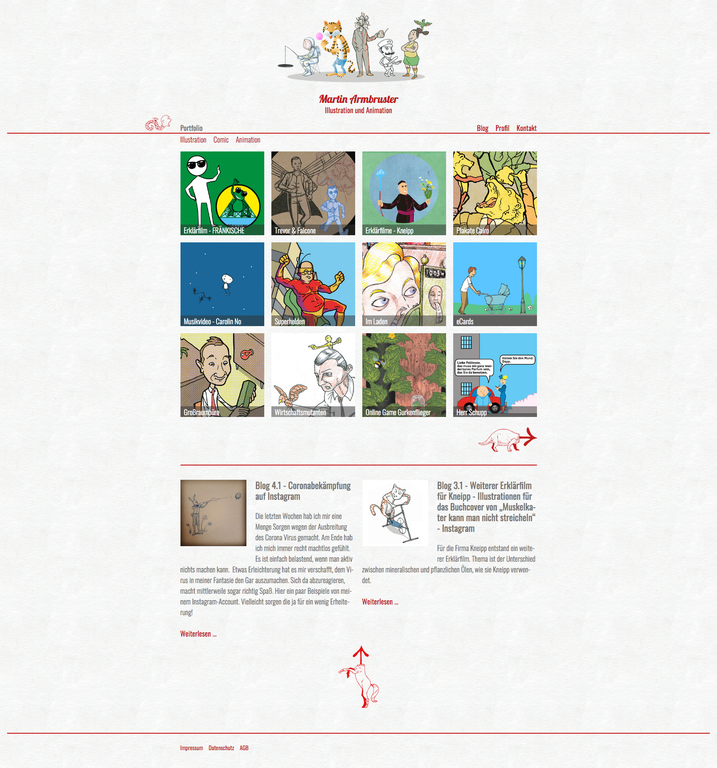 Wir arbeiten schon lange mit Martin Armbruster zusammen. Als Illustrator und Animator überzeugt er mit phantasievollen Kreationen und einer großen Bandbreite an Stilen. Bei seinem Designportfolio halfen wir ihm mit Beratung für das Design und der Umsetzung mit dem CMS Joomla. Template Entwicklung, Schulung und Pflege runden unsere Leistung ab.