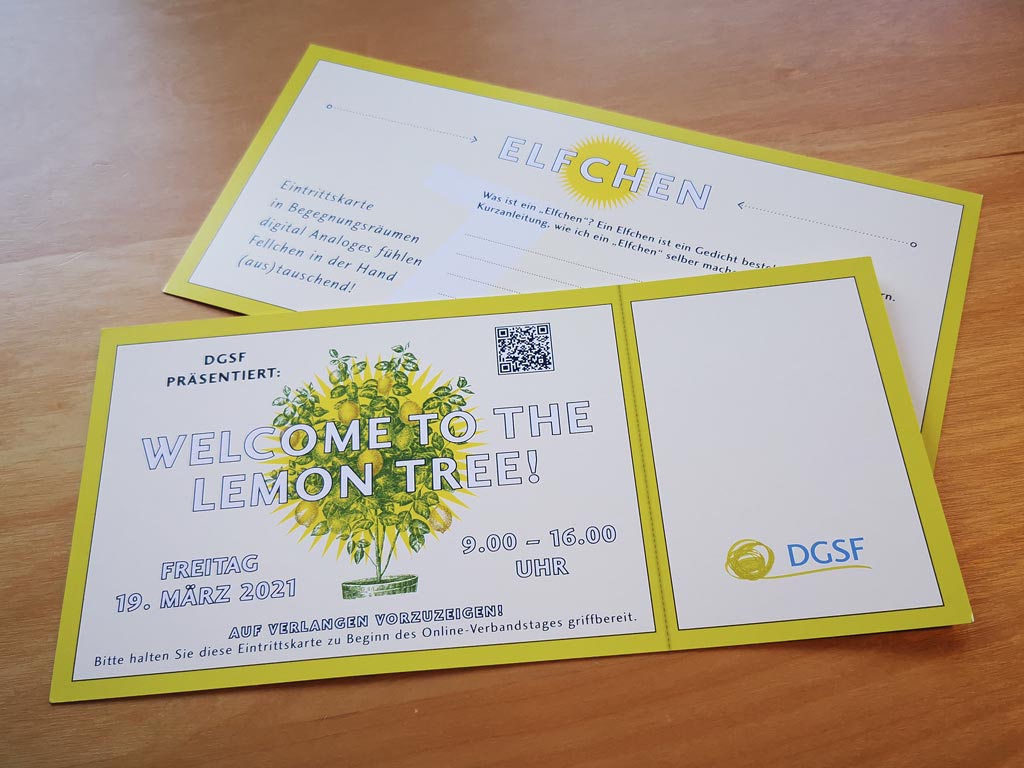 Für den Verbandstag 2021 entstanden ein Einladungs-PDF mit Anmeldung und ein Ticket, welches per Post zugesendet wurde. Das Ticket beinhaltete ein haptisches Element, das im Verlauf der Veranstaltung eine Bedeutung erlangte.
